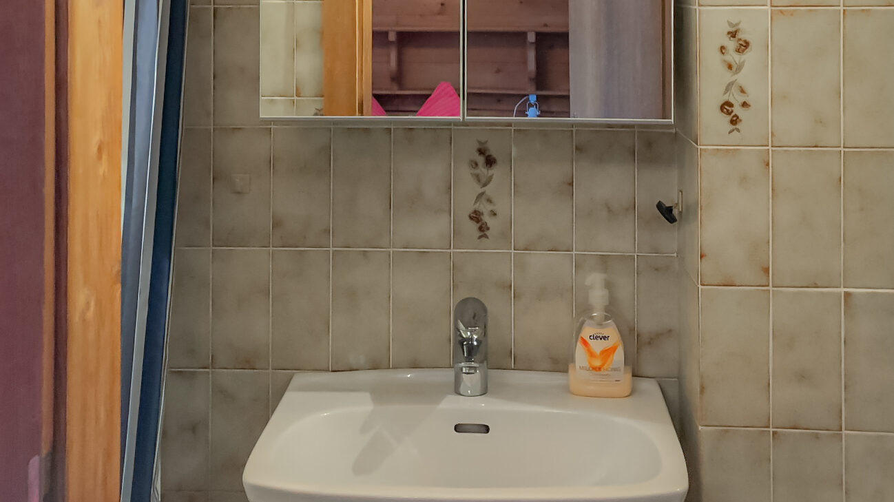 Dieses ist das kleinere unserer beiden Appartments. Ideal für zwei Personen, doch im Schlafzimmer befindet sich auch noch ein Sessel, welcher zu einem dritten Bett umfunktioniert werden kann.